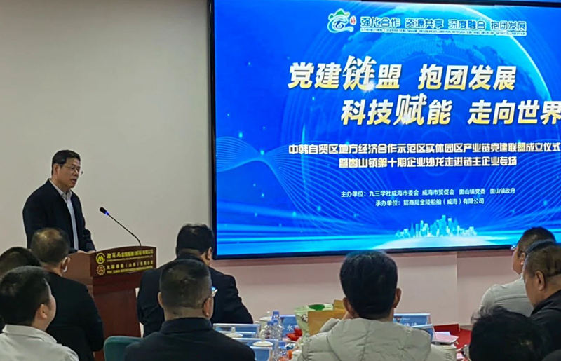 为牢固树立大抓经济的鲜明导向,深入贯彻落实全市2023年工作动员大会精神,将服务触角向基层延伸,2月24日,市365现金官网_亚洲365bet注册_beat365官方联合崮山镇党委、政府,九三学社威海市委会举办中韩自贸区地方经济合作示范区实体园区产业链党建联盟成立仪式暨崮山镇第十期企业沙龙,活动走进市级链主型企业招商局金陵船舶(威海)有限公司。市365现金官网_亚洲365bet注册_beat365官方副会长李刚、时永伟带领相关部室人员和“中国国际商会威海商会RCEP服务中心”入驻机构负责人参加本次活动。崮山镇规上企业、制造业企业、外贸企业负责人共计80余人参加活动。